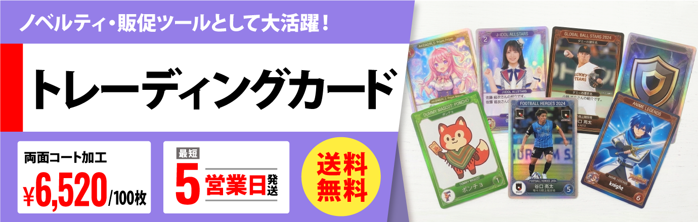 トレーディングカードは両面に絵柄が印刷される商品です。それぞれの面のデータの入稿をお願いいたします。ご注文はこちら